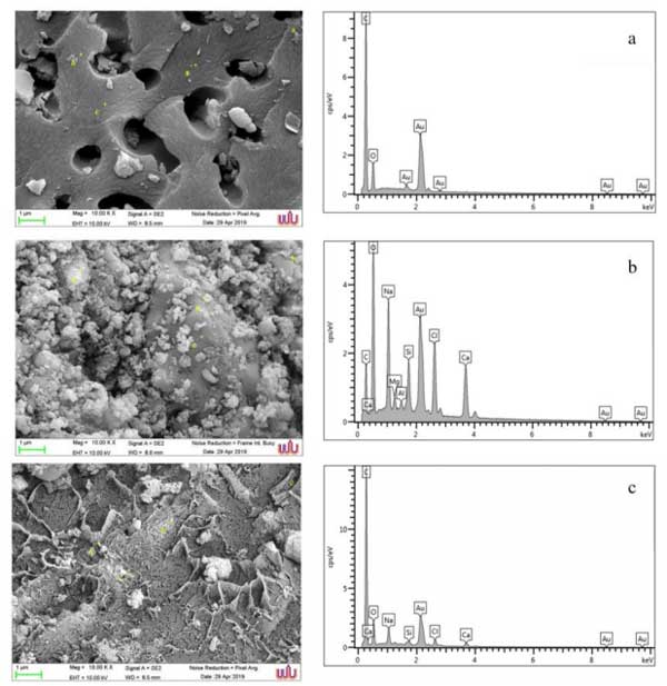 圖1:(a)活性炭1:0(b)活性炭1:1和(c)活性炭1:2的代表性SEM圖像。