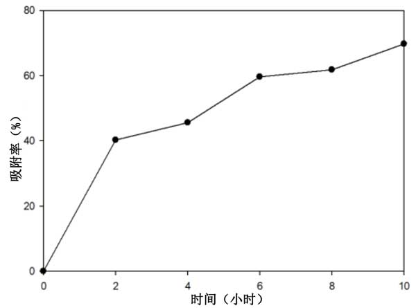 接觸時間和吸附百分比之間的關(guān)系如圖2所示。在該實(shí)驗(yàn)中,鋅離子溶液為65ppm,活性炭用量為0.5g,并在搖床中以220rpm的速度進(jìn)行攪拌。接觸時間2-10小時,對鋅離子的吸附增加(40.26-70%)。
