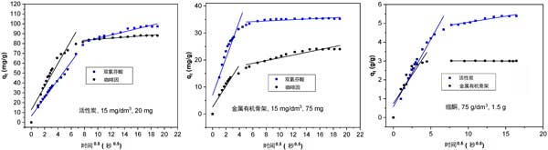 圖2:在活性炭和有機金屬骨架上吸附有機分子的粒子內(nèi)擴散模型。