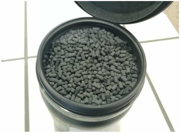 根據(jù)直接使用瓶裝真實氣體所獲得的結(jié)果,包括列出的催化劑毒物,這會導致催化劑快速降解,因此在第一個反應器的上游安裝了活性炭過濾器。為此,將金屬氧化物浸漬的活性炭顆粒添加到氣體混合站。這些顆粒專門開發(fā)用于從缺氧氣流(例如CO2、N2、CO和H2)中去除硫化氫、有機硫醇、二氧化硫、硫化羰和氮氧化物。它們的銅含量為7%(以CuO計),直徑為3mm,長度為7mm(圖3)。將總共​​約300毫升的這些顆;钚蕴考尤霘怏w混合站。