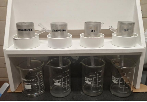 主要的多孔介質(zhì)(圖1)是市售的游砂和浮石,它們是相同的材料。游砂質(zhì)地細(xì)砂(97.5%沙子、1.8%淤泥和0.7%粘土,根據(jù)比重計(jì)法),而浮石的直徑大多大于2毫米。活性炭是韓研出廠的,是本研究中摻入沙子或浮石柱的吸附活性炭。有關(guān)活性炭詳細(xì)信息,請(qǐng)聯(lián)系我們。