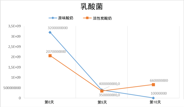 經(jīng)測(cè)定,在含有活性炭的酸奶和原味酸奶樣品的第0天、第5天和第10天,沒有菌群和總酵母霉菌(PDA)生長(zhǎng)。測(cè)定了總?cè)樗峋?圖3)。