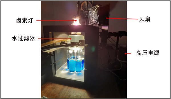 圖2:實驗裝置:使用白光光催化去除亞甲基藍(lán)。