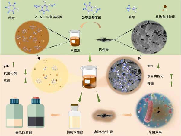 在吸附過程中,木醋液中的特定化合物會(huì)融入活性炭的結(jié)構(gòu)中。這種融入可賦予活性炭抗菌性能,使其可用于過濾和吸附以外的應(yīng)用。