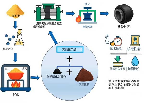 硫化橡膠襯套作為重要的機(jī)械減震元件,廣泛應(yīng)用于汽車、航空航天、機(jī)械制造等領(lǐng)域。然而,傳統(tǒng)橡膠襯套在生產(chǎn)和使用過程中存在揮發(fā)性有機(jī)物釋放、力學(xué)性能不足、阻燃性能欠佳等問題。近年來,隨著環(huán)保要求的提高和產(chǎn)品性能需求的提升,活性炭作為一種多功能填料在橡膠制品中的應(yīng)用受到廣泛關(guān)注。活性炭不僅具有發(fā)達(dá)的孔隙結(jié)構(gòu)和巨大的比表面積,還表現(xiàn)出優(yōu)異的吸附性能和補(bǔ)強(qiáng)效果,為硫化橡膠襯套的性能優(yōu)化提供了新的解決方案。