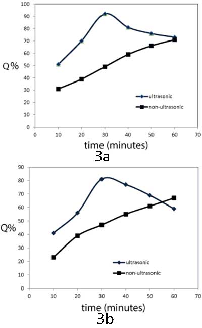 超聲處理時間對鉻和鋅離子的去除效率的影響通過在存在和不存在的情況下將0.05g MFT / 活性炭與50mL Cr 3+和Zn 2+溶液(100mg / L)頻率為210kHz的超聲波,聲強為7.7W / cm。結(jié)果如圖3a和3b所示。