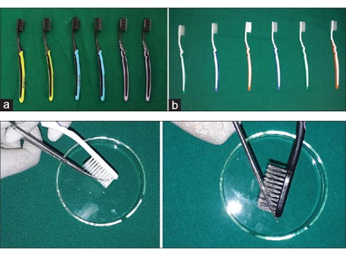 圖1:(a)活性炭牙刷。(b)非炭牙刷。切下刷毛并在分開(kāi)的無(wú)菌培養(yǎng)皿上收集。