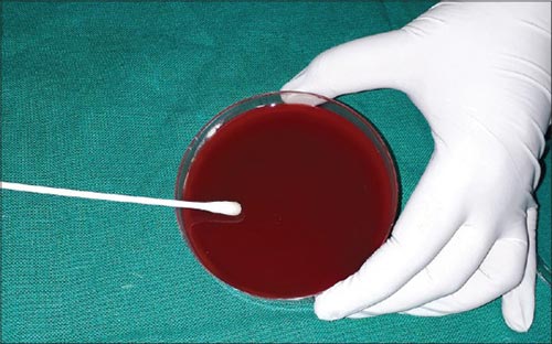 圖2:使用無(wú)菌棉簽將溶液涂抹在瓊脂平板上。