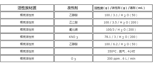 圖2.使用的活性炭,改性劑和浸漬溶劑。