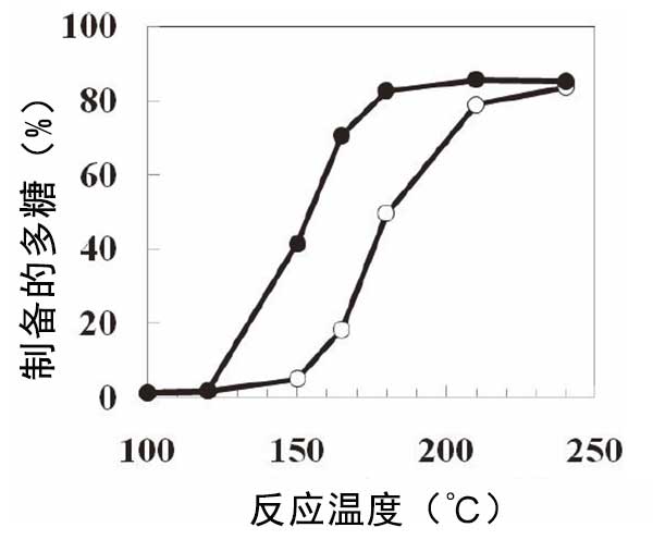 圖1:在活性炭存在(實(shí)心圓圈)或不存在(空心圓圈)的情況下從葡萄糖漿制備難消化的多糖。