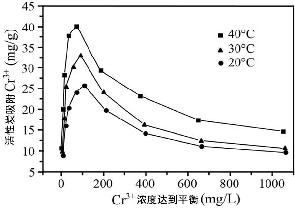 2、已經(jīng)確定,活性炭在20、30和40℃下的鉻吸附等溫線具有取決于平衡濃度的不規(guī)則形狀。三條曲線顯示出類似的趨勢(shì),陽(yáng)離子攝取量的初始增加非?。達(dá)到最大值后,隨著平衡溶液中鞣劑含量的增加,它們明顯降低。