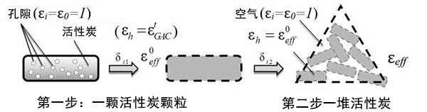 圖1:用于導出介電常數(shù)和活性炭孔隙體積之間關系的示意圖。