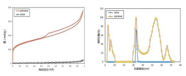 圖1:氮吸附/解吸等溫線和活性炭的粒度分布。