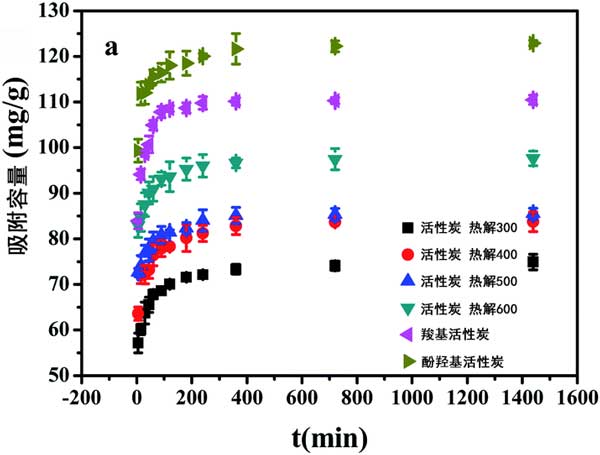 圖2:CBD吸附接觸時(shí)間對(duì)活性炭的影響。