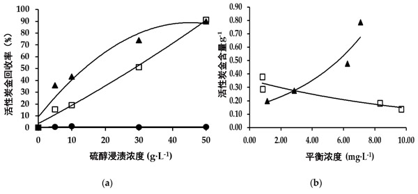 圖2:浸有硫代乙醇酸的活性炭吸附金(a)金的回收曲線(xiàn)(b)等溫線(xiàn)。