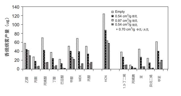 圖3:活性炭孔徑和分布對(duì)煙氣產(chǎn)量的影響。