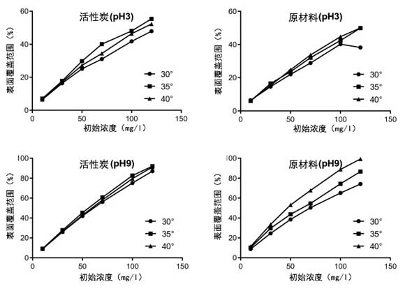 圖2:不同溫度和pH條件下活性炭的表面覆蓋圖。